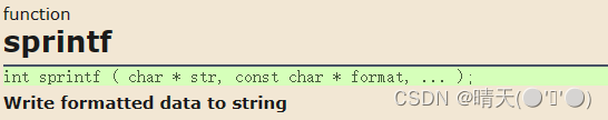 💡再对比前边的fprintf函数,相比于fprintf函数将内容写进文件中,可以发现sprintf函数的第一个参数变成了一个字符指针,sprintf的作用即是将格式化的数据转化成字符串,放在传进来的字符数组里。