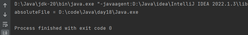 public static void fileMethod2(){ File file = new File("D:\\code\\Java.exe"); File absoluteFile = file.getAbsoluteFile(); System.out.println("absoluteFile = " + absoluteFile); }