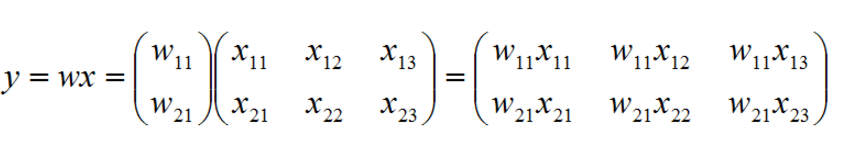 若 w 为 m1 的矩阵,x 为 mn 的矩阵,那么通过点乘结果就会得到一个 m*n 的矩阵。
