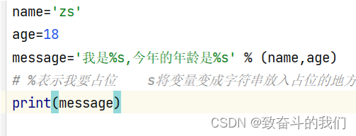 - message='我是%s,今年的年龄是%s' % (name,age)