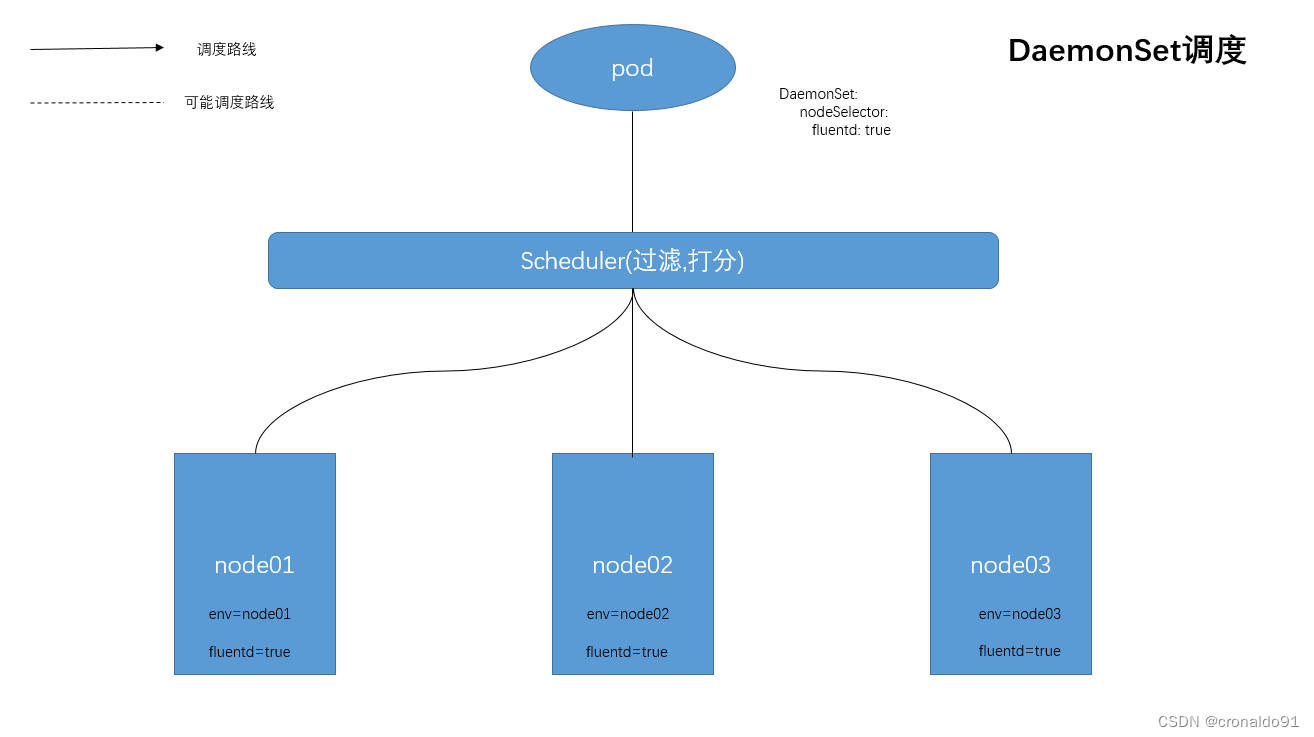 该pod会在每一个符合调度的node 节点上启动一个实例。该节点必须存在fluentd=true 的标签。