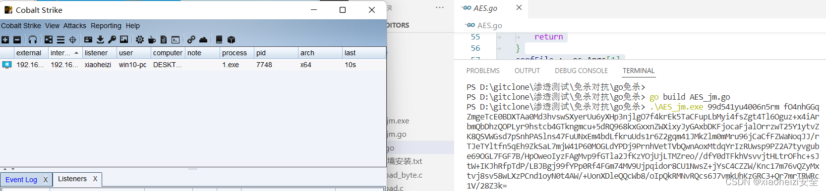1.执行命令,运行AES加密脚本对shellcode进行aes加密