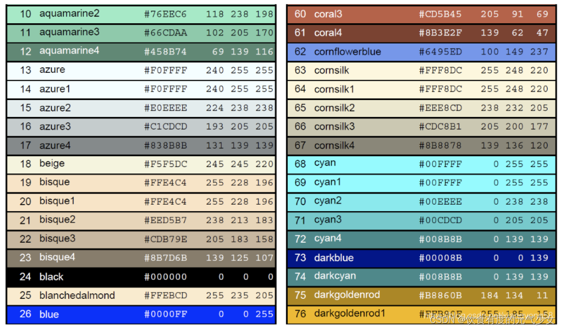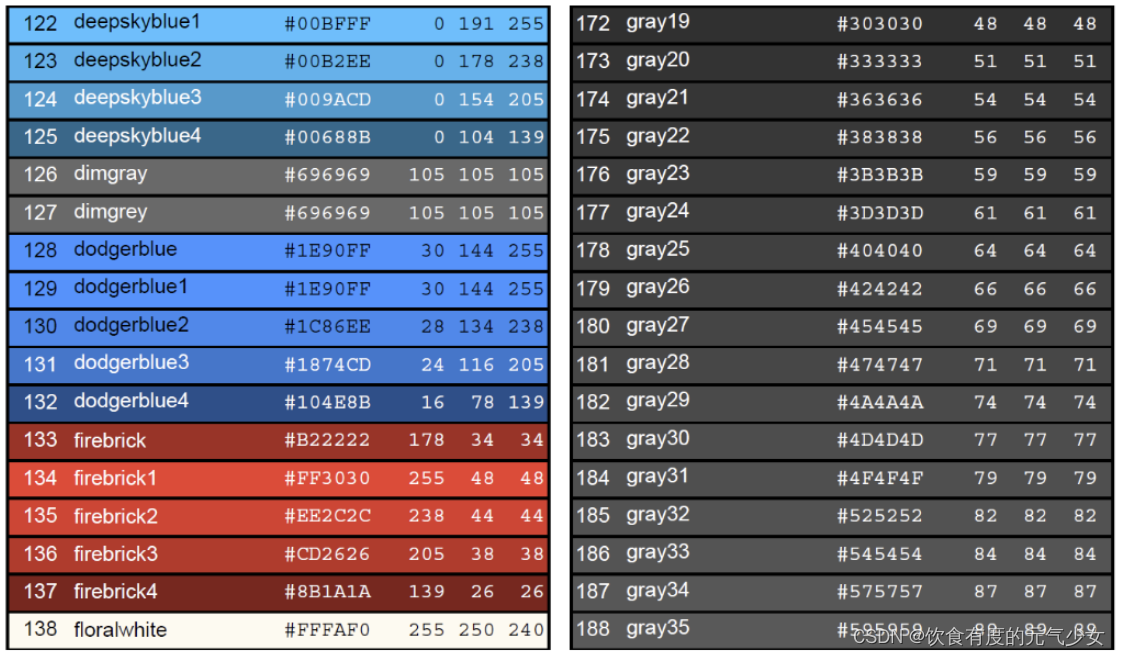 什么场景会用到颜色?比如在绘图过程中,为了让图更好看,有的时候,需要选择使用不同的颜色进行绘制或者填充。本文提供了R颜色的相关参数。