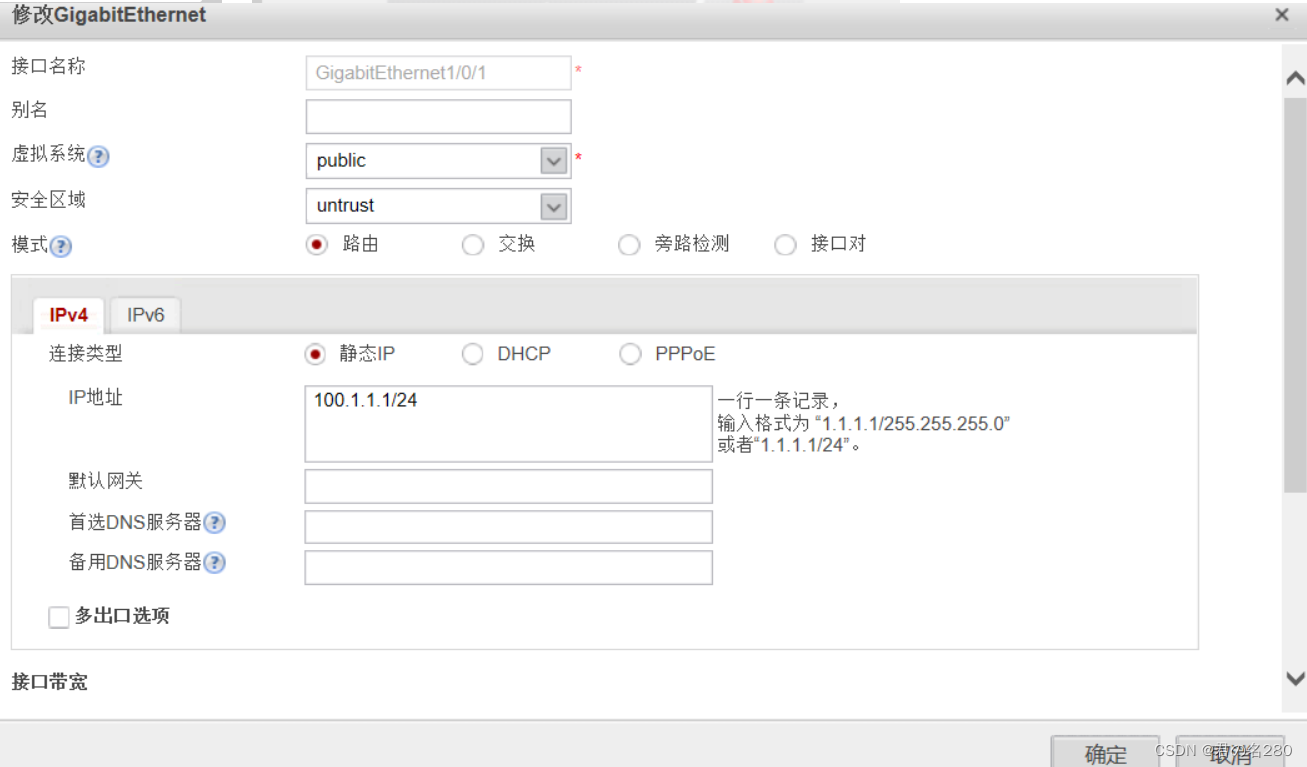 登录防火墙修改ip地址,并开启服务,这样在之后我们才能用web登录sug6000v