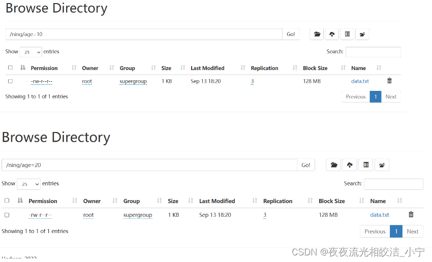 - hdfs dfs -put /opt/hadoop/data/data1.txt /ning/data