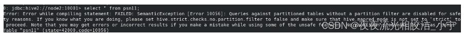 如果在一个分区表执行hive,除非where语句中包含分区字段过滤条件来显示数据范围,否则不允许执行。换句话说, 就是用户不允许扫描所有的分区。进行这个限制的原因是,通常分区表都拥有非常大的数据集,而且数据增加迅速。