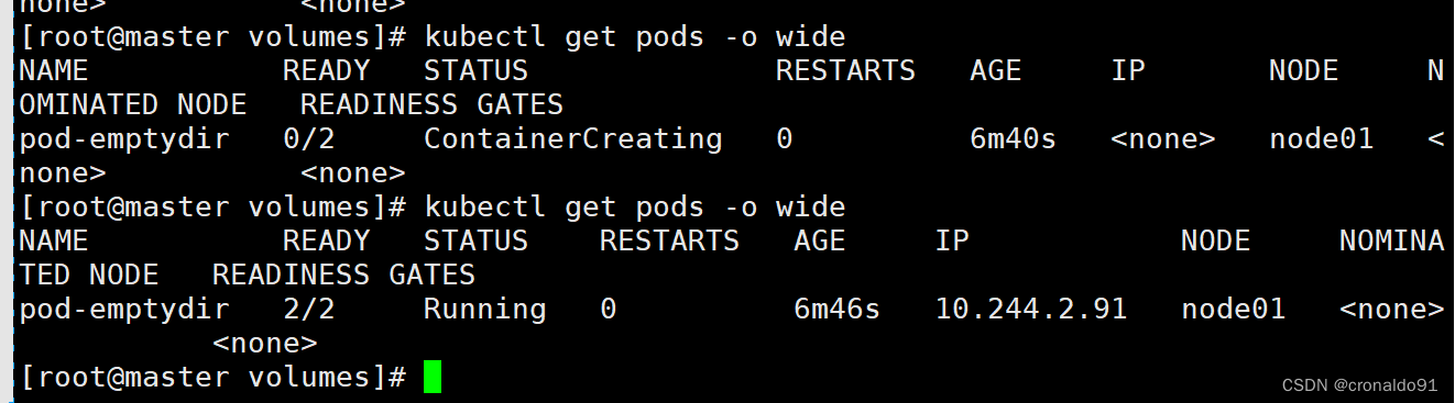 - [root@master volumes]# kubectl apply -f pod-emptydir.yaml