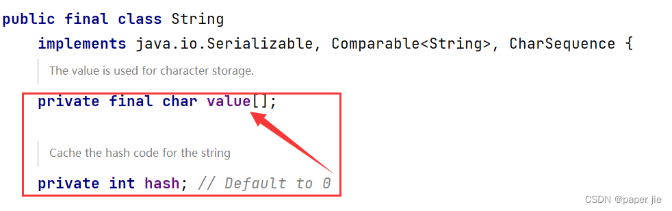 value被final修饰,表明value自身的值是不能被改变的,也就是不可以引用其他字符数组,但是它空间中的内容可以改变。
