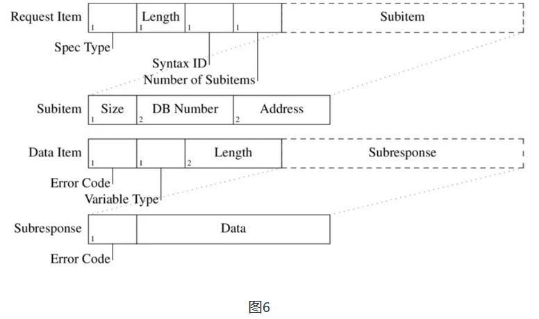 Request Item:此结构用于解决实际变量,其长度和字段取决于所使用的寻址类型。这些项目仅存在于作业请求中,无论寻址模式是什么,还是读取或写入请求,都会从相应的Ack数据中发出。