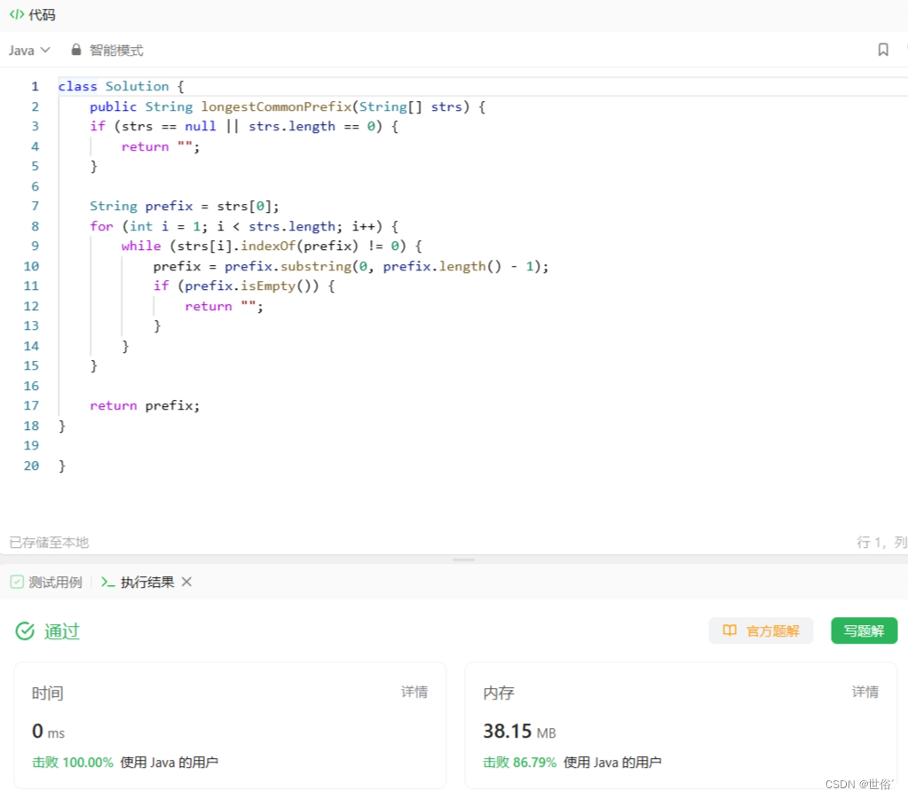 1、初始化一个空字符串prefix,表示最长公共前缀。