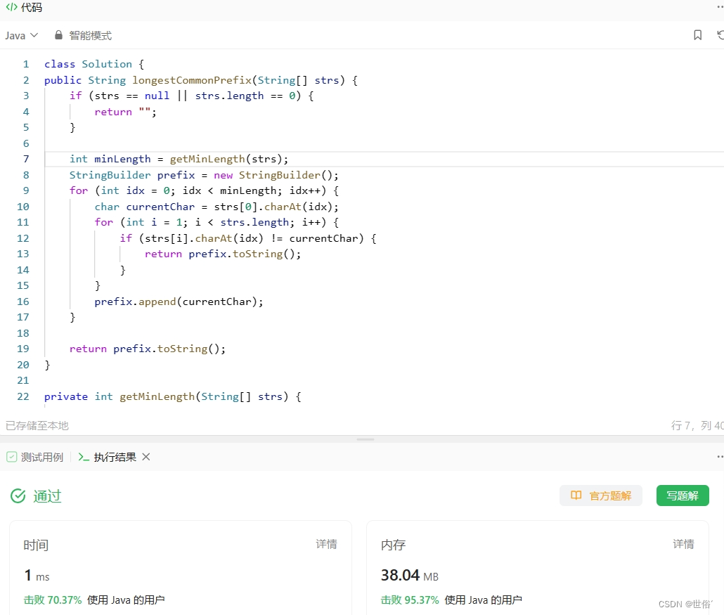 3、返回最长公共前缀作为结果。