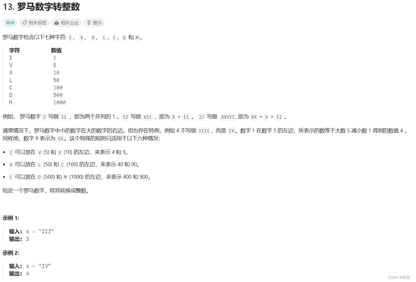 除了使用哈希表的方法,还可以使用逐个判断字符的方法来将罗马数字转换成整数。