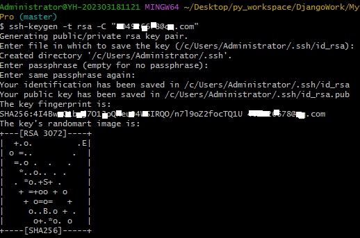 后面的your_email@youremail.com改为你在github上注册的邮箱,之后会要求确认路径和输入密码,我们这使用默认的一路回车就行。