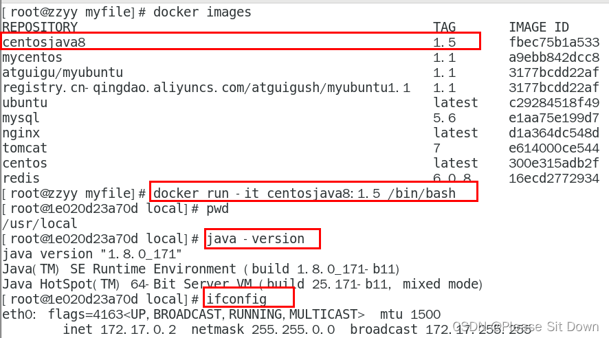 案例:docker run -it centosjava8:1.5 /bin/bash