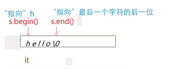 begin获取一个字符的迭代器 ,end获取最后一个字符后一个位置的迭代器: