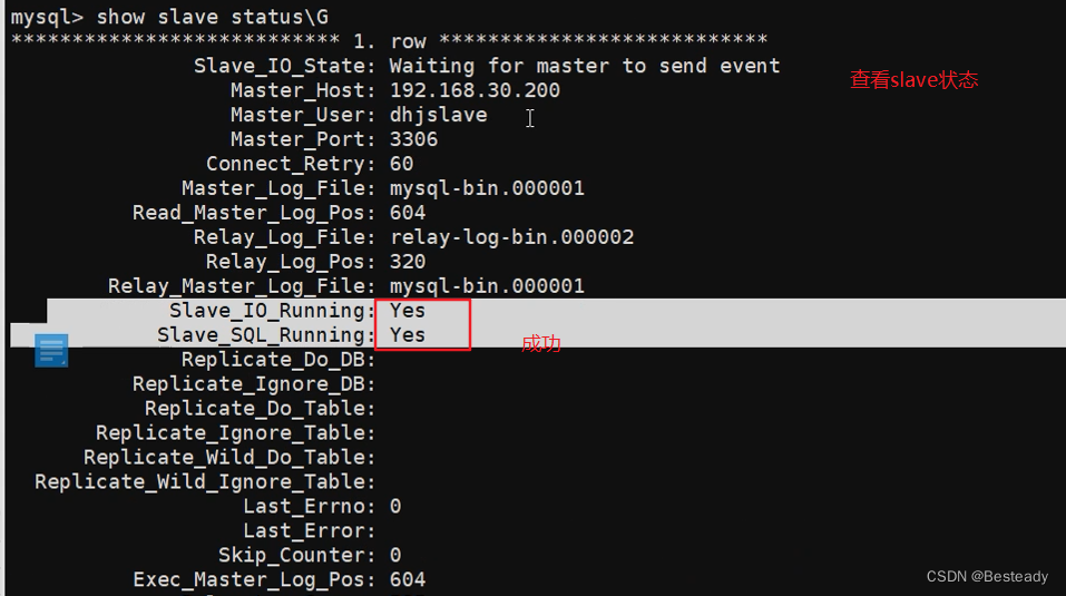 Slave_SQL_Running: Yes #负责自己的slave mysql进程