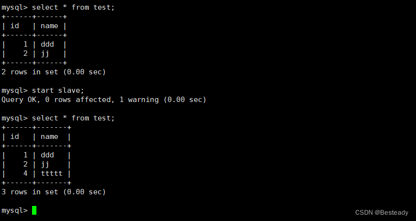 5、从节点将启动SQL线程从中继日志中读取二进制事件,在本地重放,即解析成sql 语句逐一执行,使得其数据和主节点的保持一致。最后I/O线程和SQL线程将进入睡眠状态,等待下一次被唤醒。
