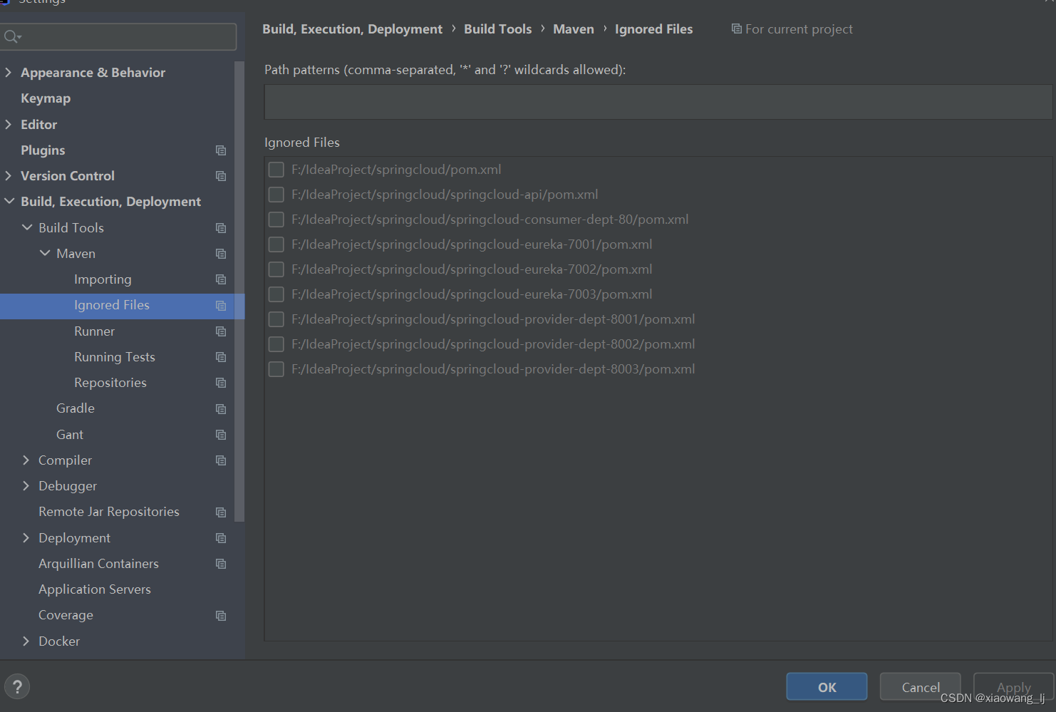 到-->文件 | 设置 | 构建、执行、部署 | 构建工具 | Maven | 已忽略的文件