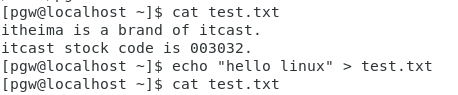 echo “hello linux” > test.txt
