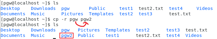 如图,通过pwd得知当前所在是HOME目录:/home/pgw