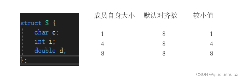 1.算出每个成员的对齐数(VS的默认对齐数是8,对齐数就是本身成员变量)