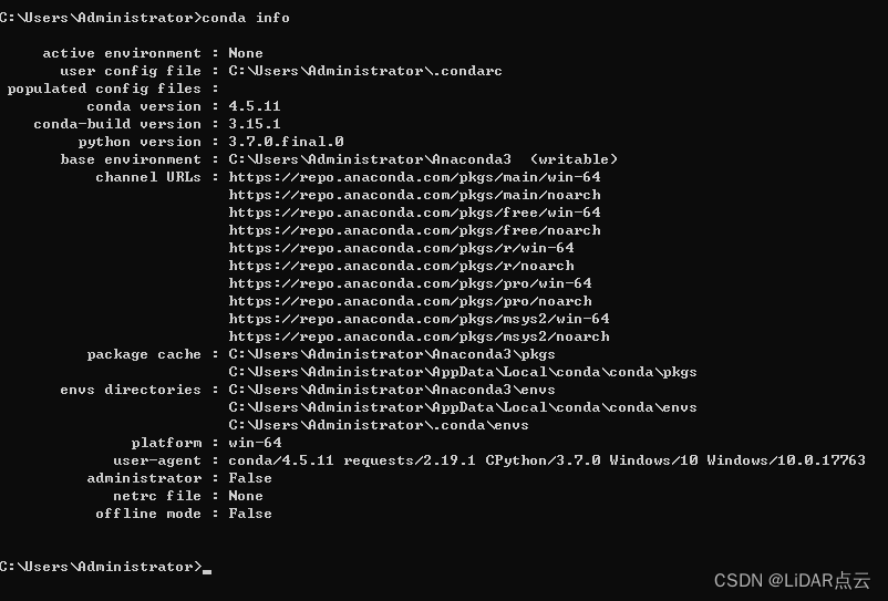 也可以输入conda info显示相关信息: