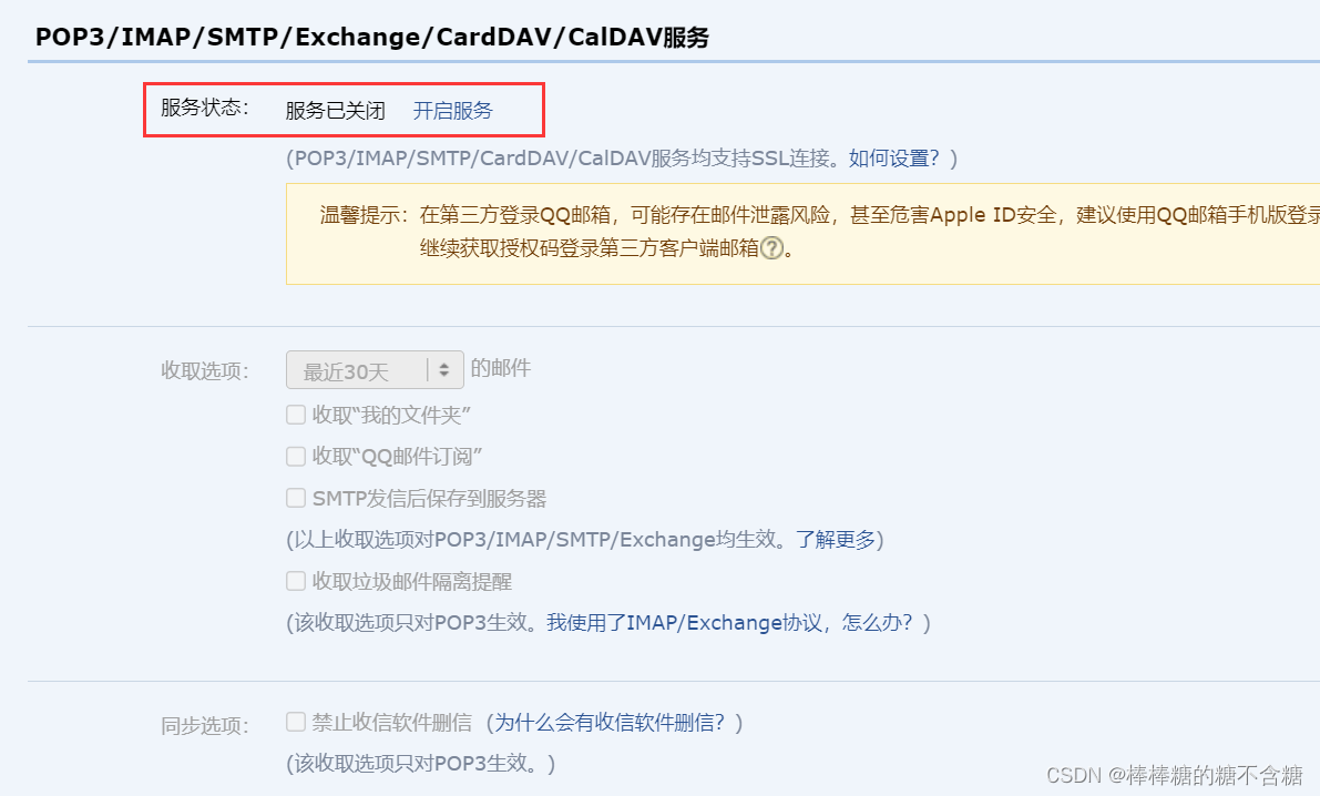 在【账号】界面找到下述服务,可以看到目前服务处于关闭状态,点击【开启服务】,经过手机号验证之后,即可看到生成的授权码。授权码需妥善保管。