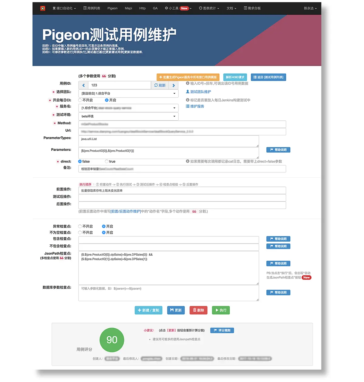 同时在维护接口自动化测试的时候,都会看到用例评分的情况,来协助QA提高用例编写的质量。