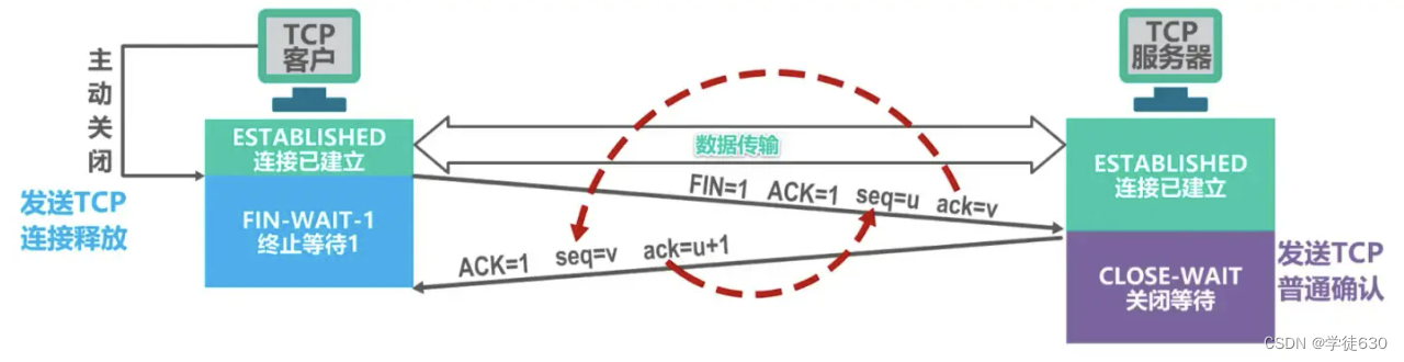 - 确认号ack字段的值设置为u+1,这是对TCP连接释放报文段的确认