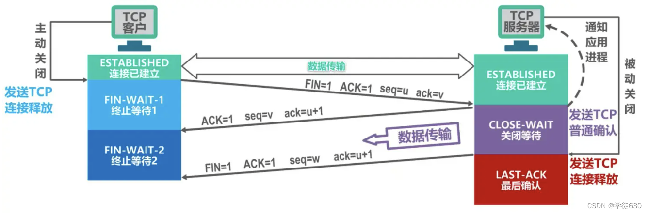TCP客户进程收到TCP确认报文段后就进入终止等待2状态,等待TCP服务器进程发出的TCP连接释放报文段