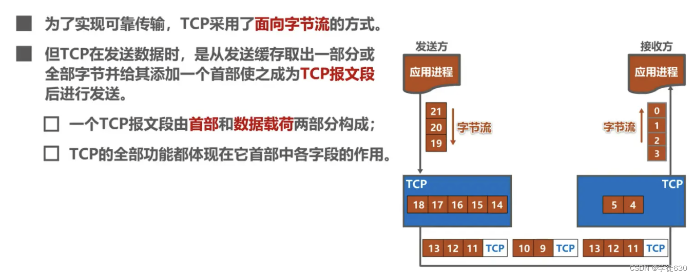 TCP是面向字节流的,这正是TCP实现可靠传输、流量控制、以及拥塞控制的基础