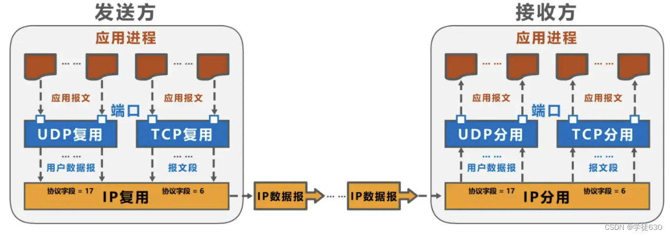 接收方的运输层通过不同的端口,将收到的应用层报文,交付给应用层中相应的应用进程