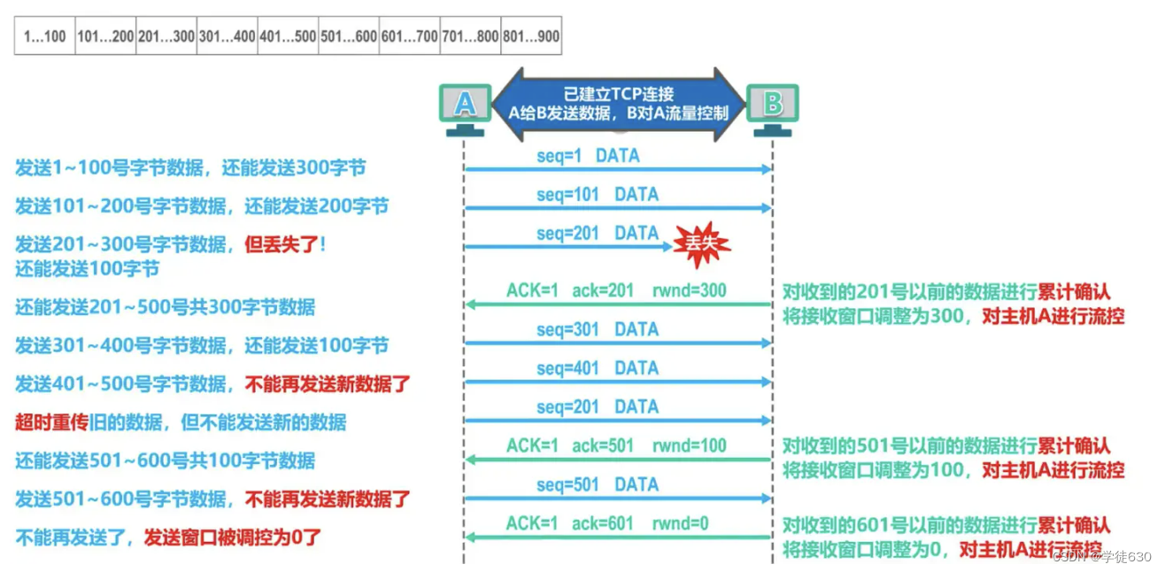 上图主机A现在可将发送缓存中序号501~600的字节数据全部删除,因为已经收到了主机B对它们的累计确认