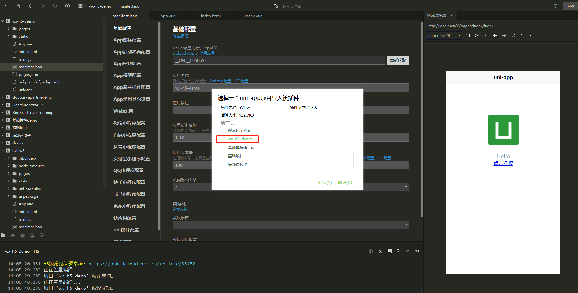在一个已创建的Hbuilder项目中,添加uView框架插件