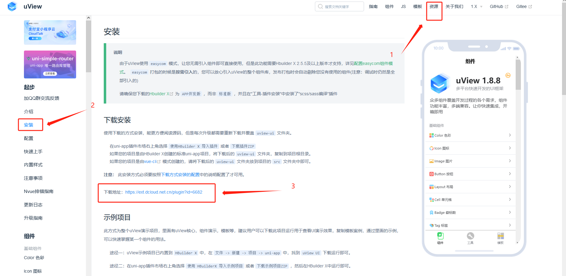 这里必须要注意:先在项目中新建【uni_modules】目录,如果已经有了就不会出现该菜单,这样下载的插件就会自动在这个目录下,否则会下到根目录下