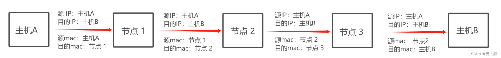 - mac地址 描述两个相邻节点的 起点 和 终点