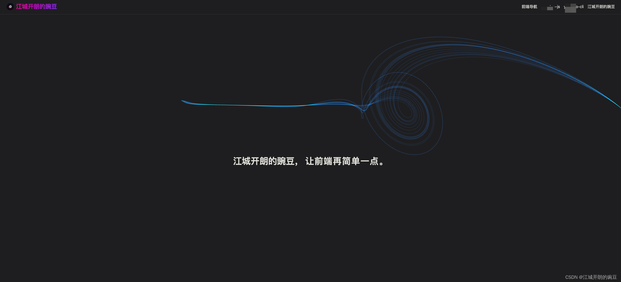 codepen上抄的,可以看到右上角有几个Tab,分别是 前端导航,这两个有我的名字拼写就先不展示了和 江城开朗的豌豆。网站图标是偷