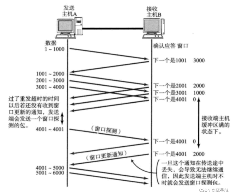 因此主机B会收到很多重复数据。那么TCP协议需要能够识别出那些包是重复的包,并且把重复的丢弃掉。