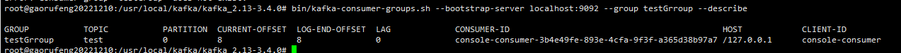 bin/kafka-consumer-groups.sh --bootstrap-server localhost:9092 --describe --group testGroup