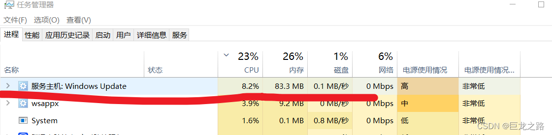 后来我去任务管理器按照CPU使用情况来排序,发现原来是Windows的更新程序