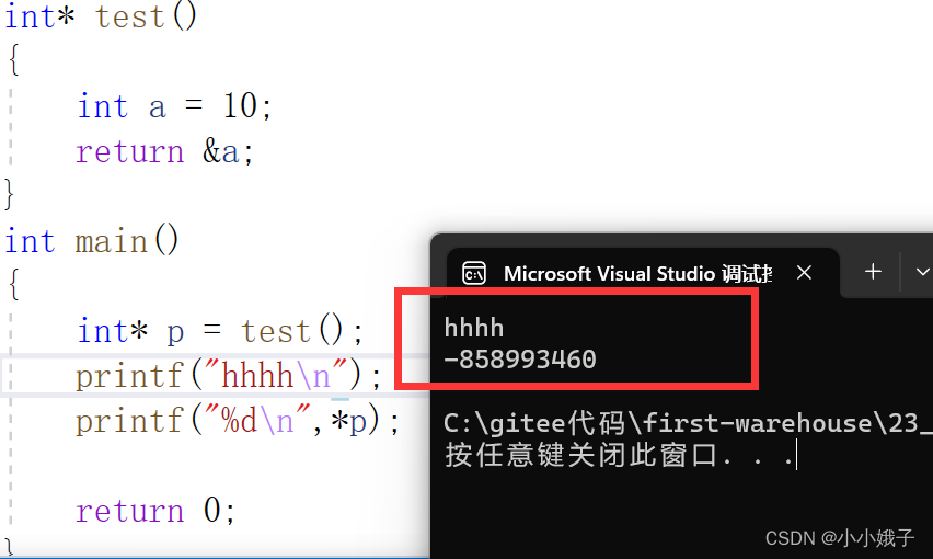 2.数组被销毁,返回的p就是野指针(所指向的空间已不属于自己)