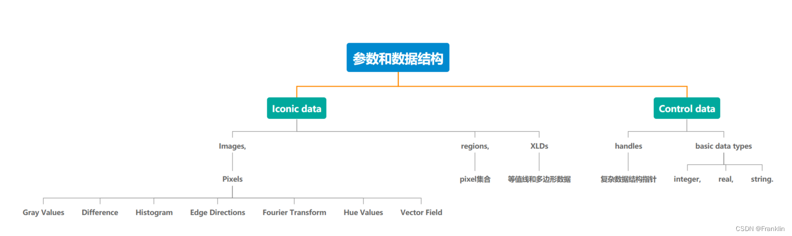 HALCON具备两个主要的参数类型:iconic data 和 Control data。 具体分类如下: