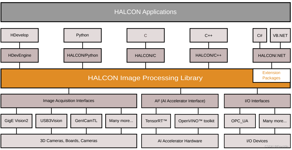 HALCON的架构如上,其主要的部分,就是图像处理库。
