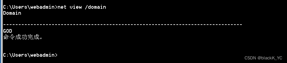 net view /domain 查询域列表net time/domain 从域控查询时间,若当前用户是域用户会从域控返回当前时间,亦用来判 断主域,主域一般用做时间服务器net localgroup administrators 本机管理员【通常含有域用户】net user /domain 查询域用户 ( 当前域 )net group /domain 查询域工作组net group "domain computers" /domain 查看加入域的所有计算机名net group "domain admins" /domain 查询域管理员用户组和域管用户net localgroup administrators /domain 查看域管理员net group "domain controllers" /domain 查看域控net accounts /domain 查看域密码策略