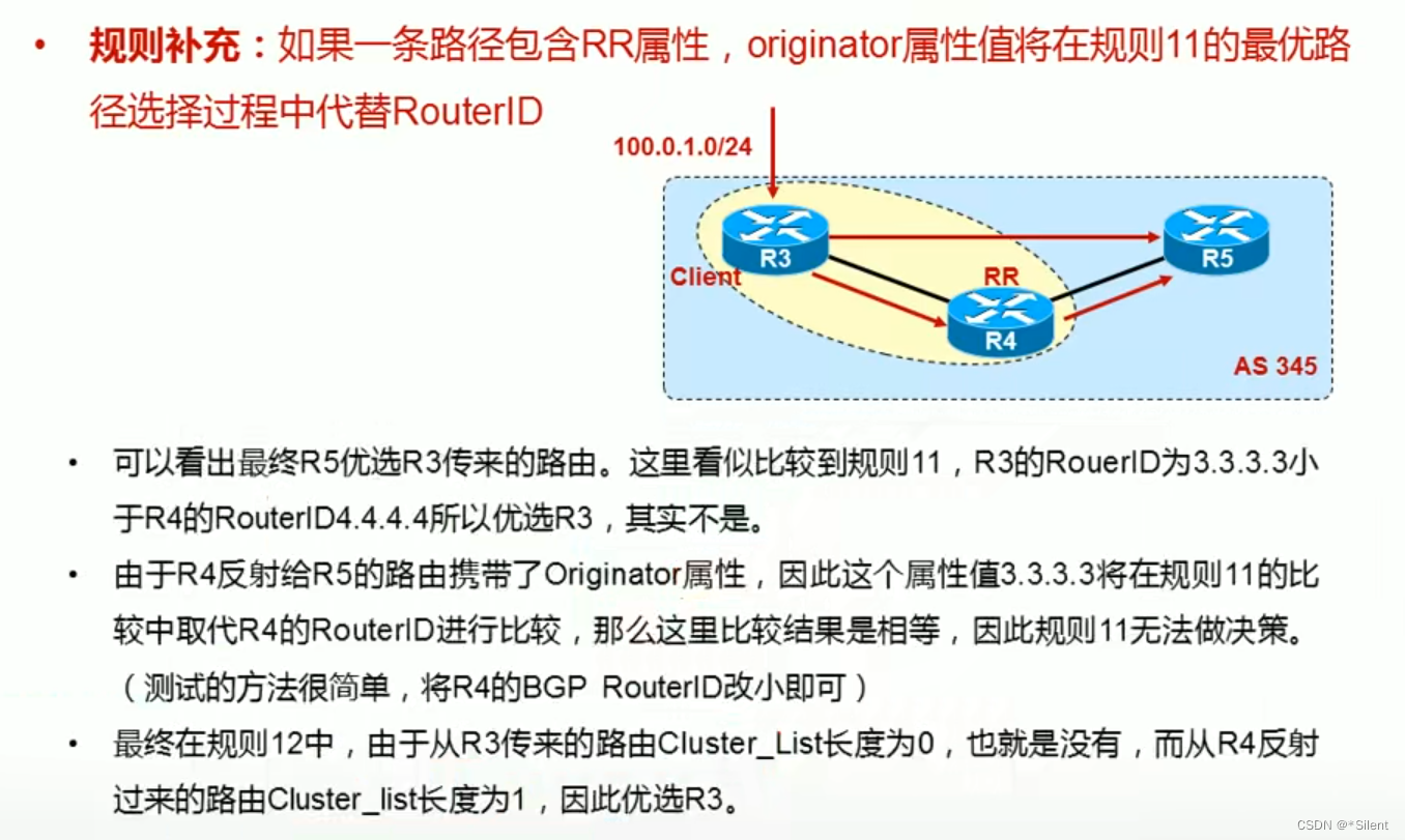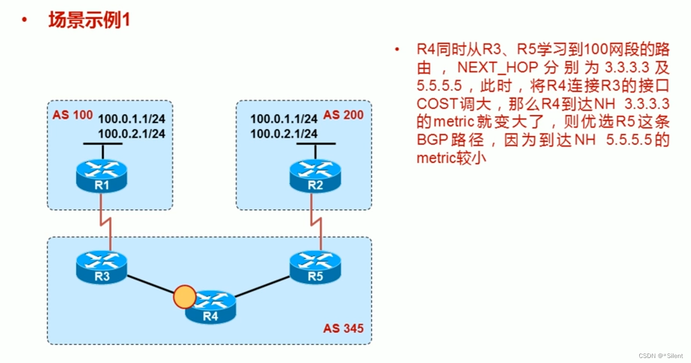 ·IBGP中,从EBGP传来的next-hop属性在IBGP中保持不变的被传递