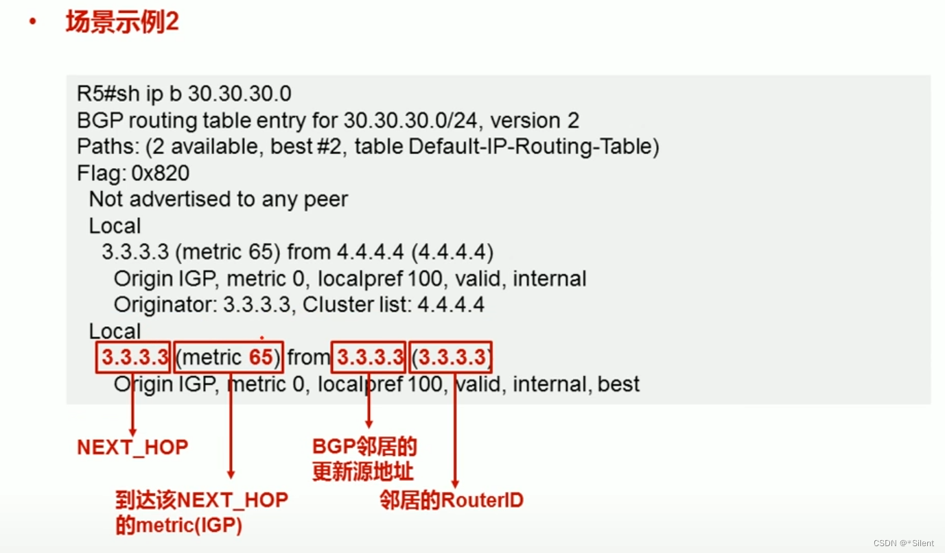 ·路由表∶列出了到达目的网段的最佳路径,EBGP路由AD为20,IBGP路由AD为200