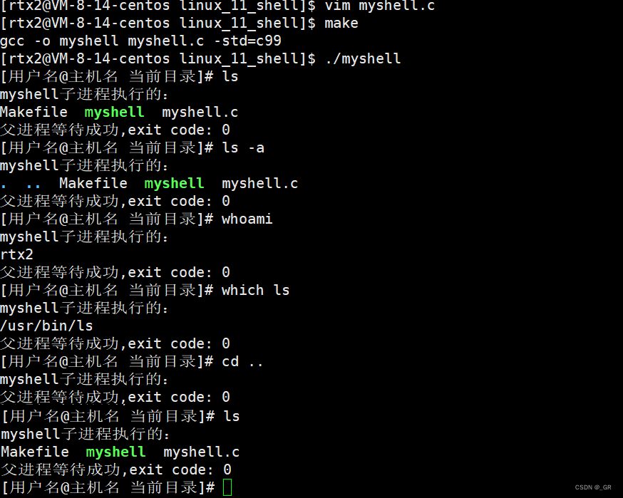 - // 1. 打印显示提示符,比如:[rtx2@VM-8-14-centos linux_11_shell]$(这里就不获取了)