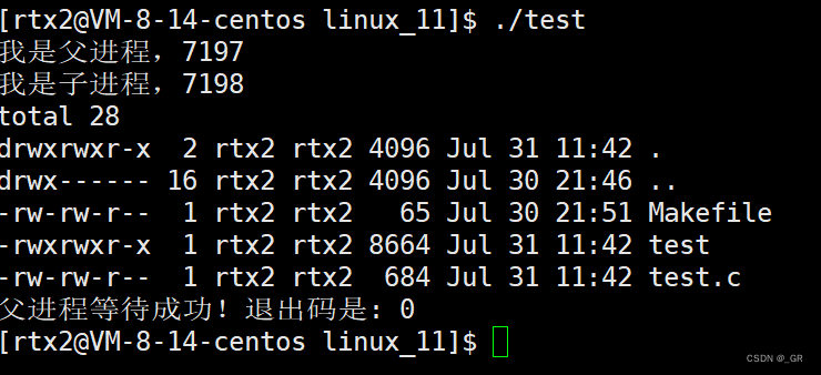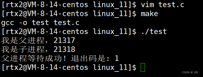 - printf("父进程等待成功,exit code: %d\n", WEXITSTATUS(status));