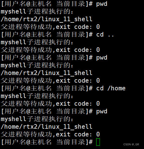 但是请不要忘了:子进程是一运行就完毕的进程,运行完了你切换它的路径,毫无意义。所以,我们在 shell 中,更希望谁的路径发生变化呢?答案是父进程(shell 本身)。