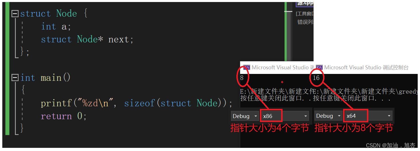 在这之前,我们先来写一段前言用于激发读者思考!我们来看下面这两个结构体大小的对比,先来预告一波:结构体的内存对齐与结构体时候如何计算内存大小是有关。看下图: